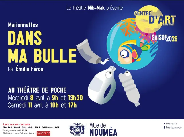 The Nouméa City Art Center is hosting the Le théâtre Mik-Mak company at the Théâtre de Poche for its puppet show titled « Dans ma bulle », which features the colors of the Caledonian lagoon.